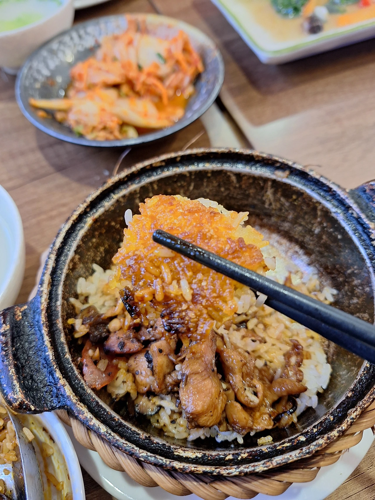 쇠로 달구어진 뚝배기에 누룽지 솥밥에