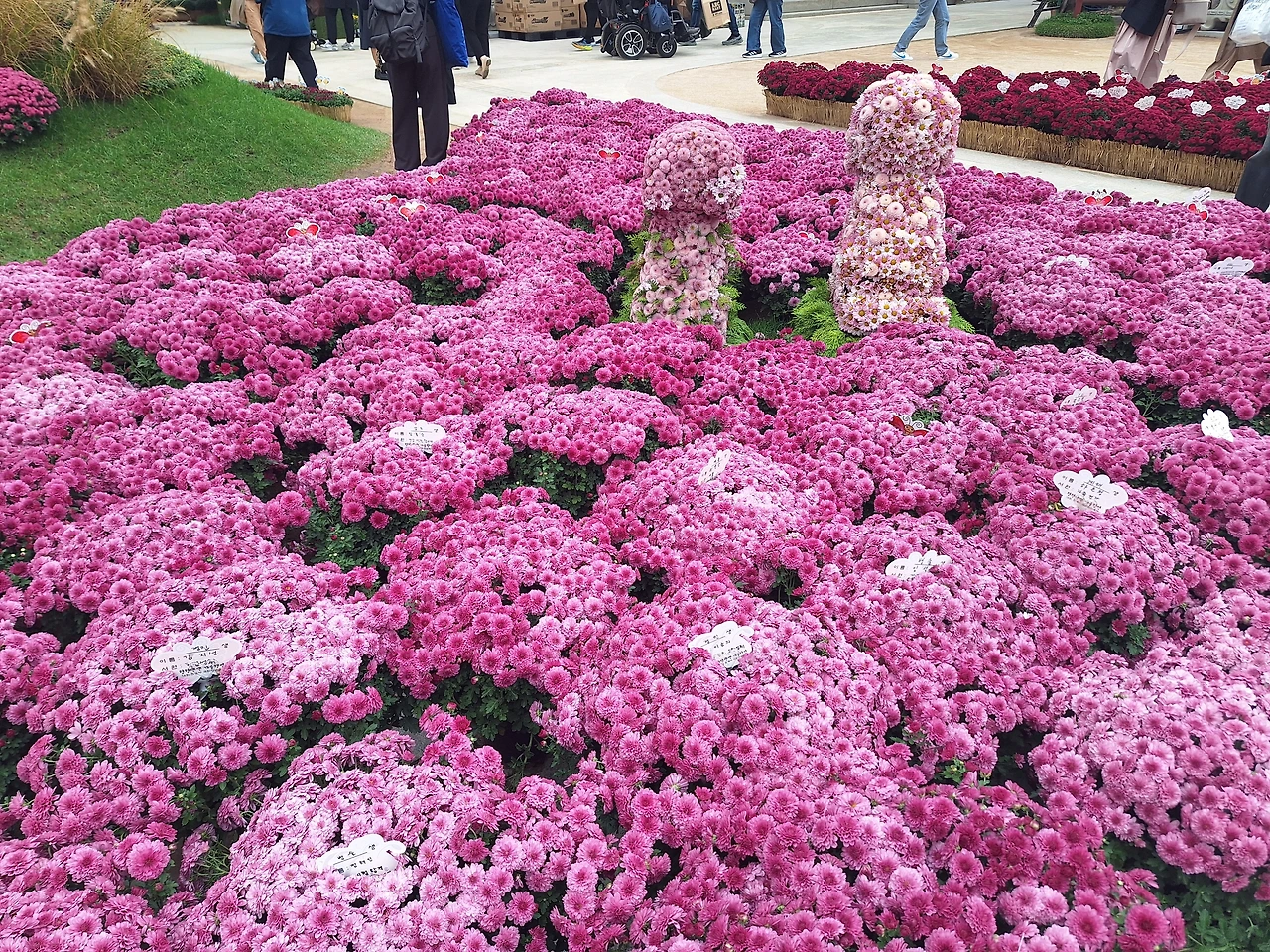 여러 색깔의 국화꽃 향기가 넘쳐 납니다.