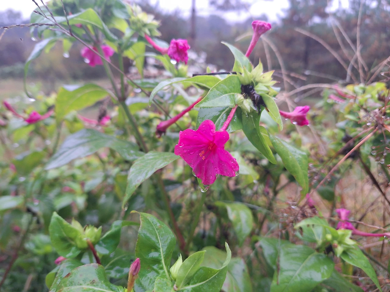 맺혀있는 빗방울이 보석처럼 빛난다.