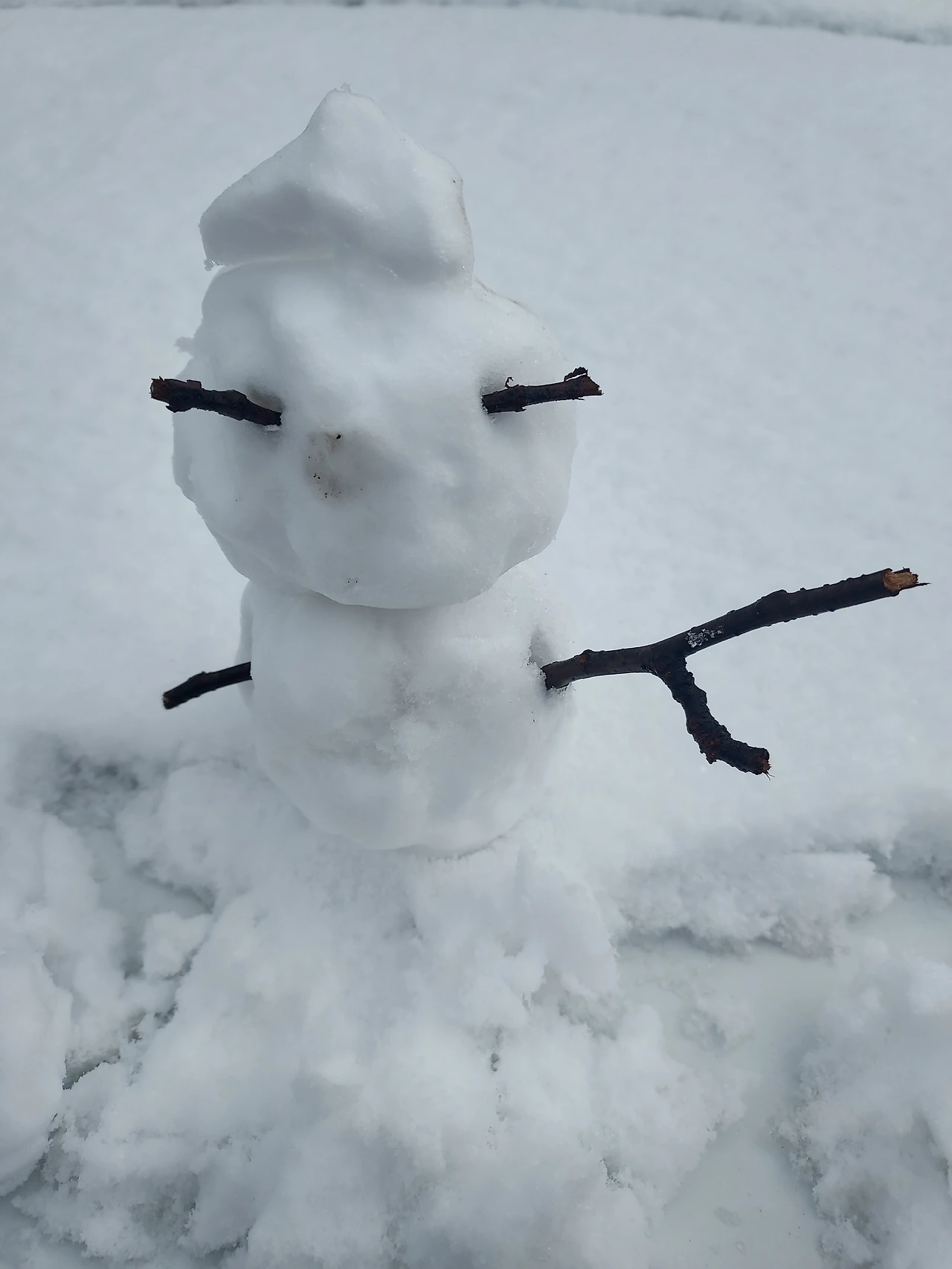 작은 눈사람을 만들어 나뭇가지를 꼽았다.