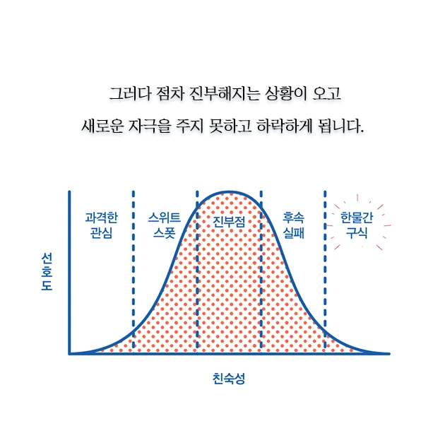 그렇다면 기존의 것을 반복해서 생산해 내면 되는 데 왜 새로운 것을 원한다고 사람들은 말하는 것일까? 사실 사람들은 아주 새로운 것을 원하는 것이 아니라 기존에 있던 것에서 조금만 바뀐 것을 원하는 경향이 있는 것이다. 너무나도 파괴적으로 변화한 것에는 거부감을 느끼게 되고 그렇기 때문에 종종 예술가들은 그들의 시대에는 인정을 받지 못하나 먼 훗날 인정을 받게 되는 경우가 생기게 되는 것이다. 그리고 "생각이 돈이 되는 순간"에서는 이 흐름을 '창조성 커브'라는 것을 보여주며 이야기한다.