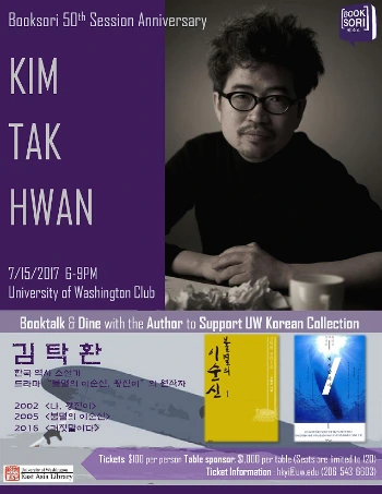 김탁환 소설가가 오는 7월 워싱턴대학교의 북소리에 초대되어 시애틀에 올 예정이다.