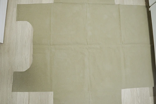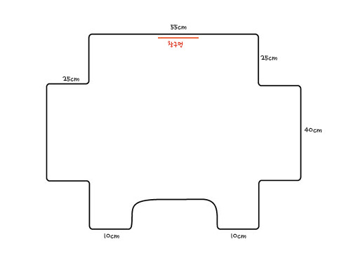 이때, 1장의 원단에 55cm*40cm의 박음질선을 바닥이 될 겉면에 그려놓는다.
