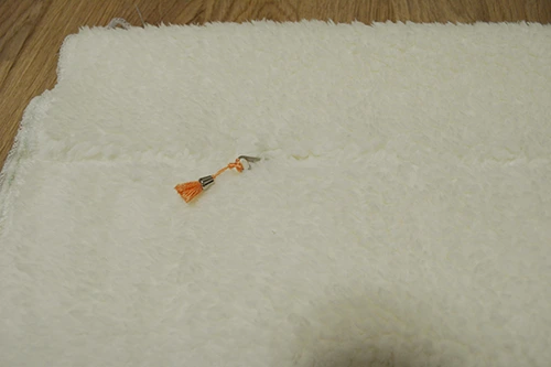 재료: 면기 모지-베이지 2마(구매처: 인 패브릭), 폭신한 털 원단 1마, 가시 도트 단추, 지퍼, 방울 솜 1kg