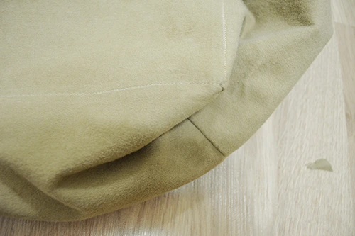 사각형의 예쁜 모양이 되게 하려면 모서리 박음질 부분에 맞춰 솜이 없도록 갈라준다.