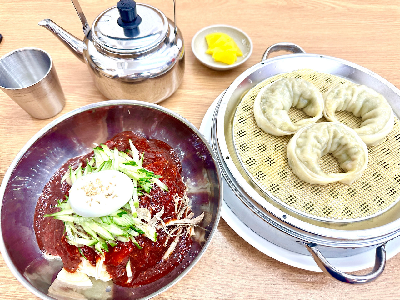 (기분이 좋아져서 비빔밀면 곱빼기에 만두 반판을 시켰네요)