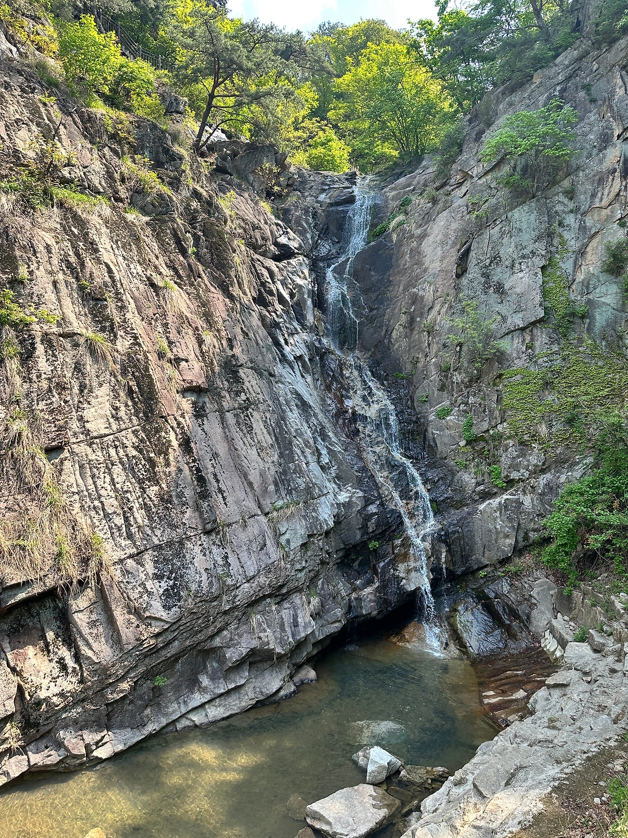 ‘악’ 자가 들어간 산이니 만큼 제 기준에서는 만만한 산이 아닙니다. 폭포 주차장으로 올라가는 등산로는 경사도 높고 돌짝으로 되어 있어 힘이 많이 들어갑니다.