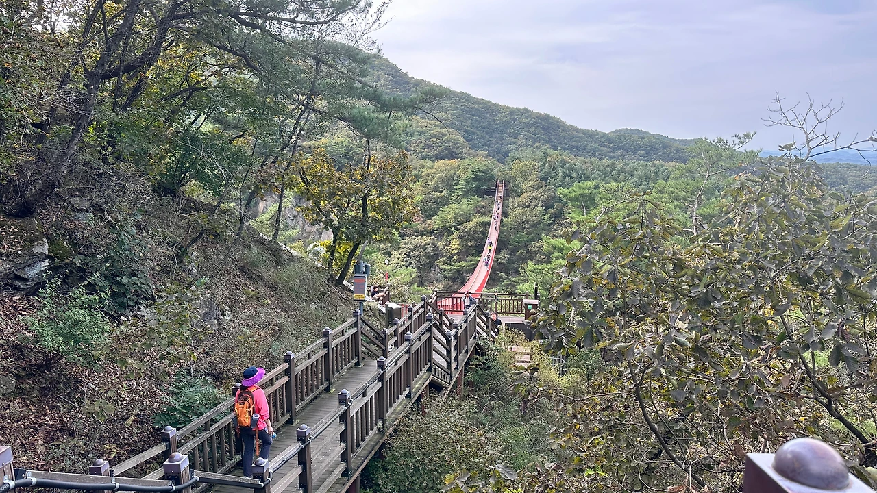 출렁다리를 지나 운계 폭포에서 땀을 식힌 후 정상 전망대에서 탁 트인 전망을 보고 있노라면 묵은 스트레스가 싹 씻겨 내려갑니다.