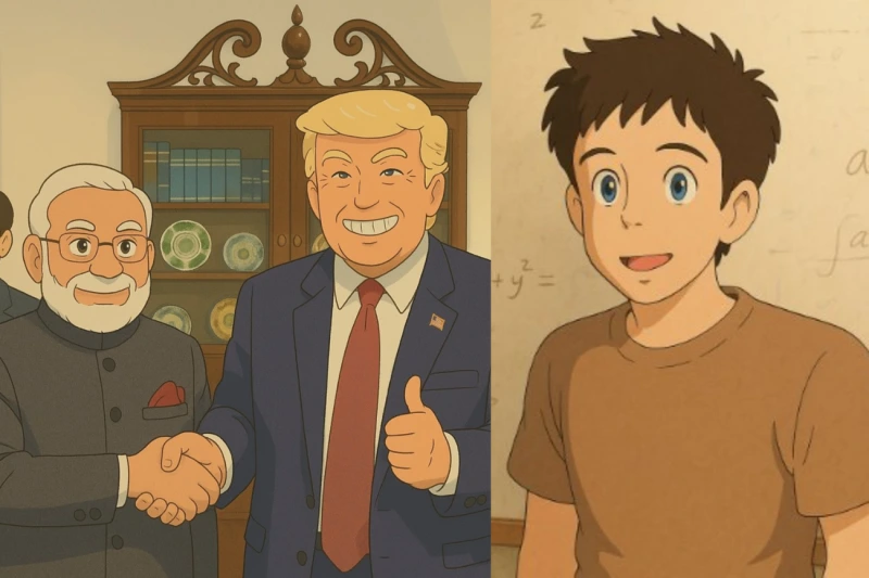 인도 나렌드라 모디 총리와 미국 도널드 트럼프 대통령, 샘 알트만 CEO를 지브리 화풍으로 AI가 생성한 이미지(출처-X)