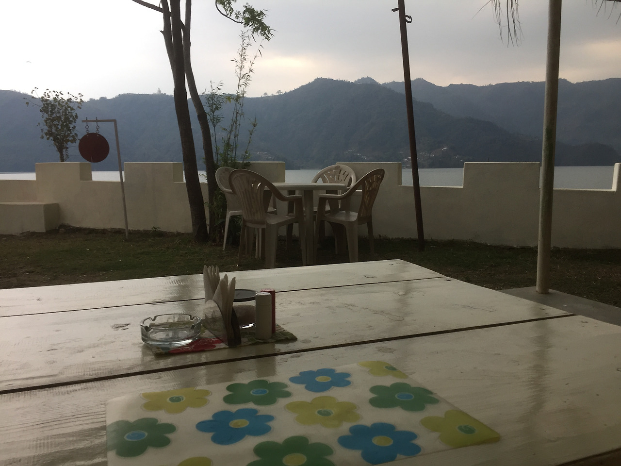 나는 호숫가가 보이는 바깥 자리에 앉아 가만히 경치를 바라보았다.