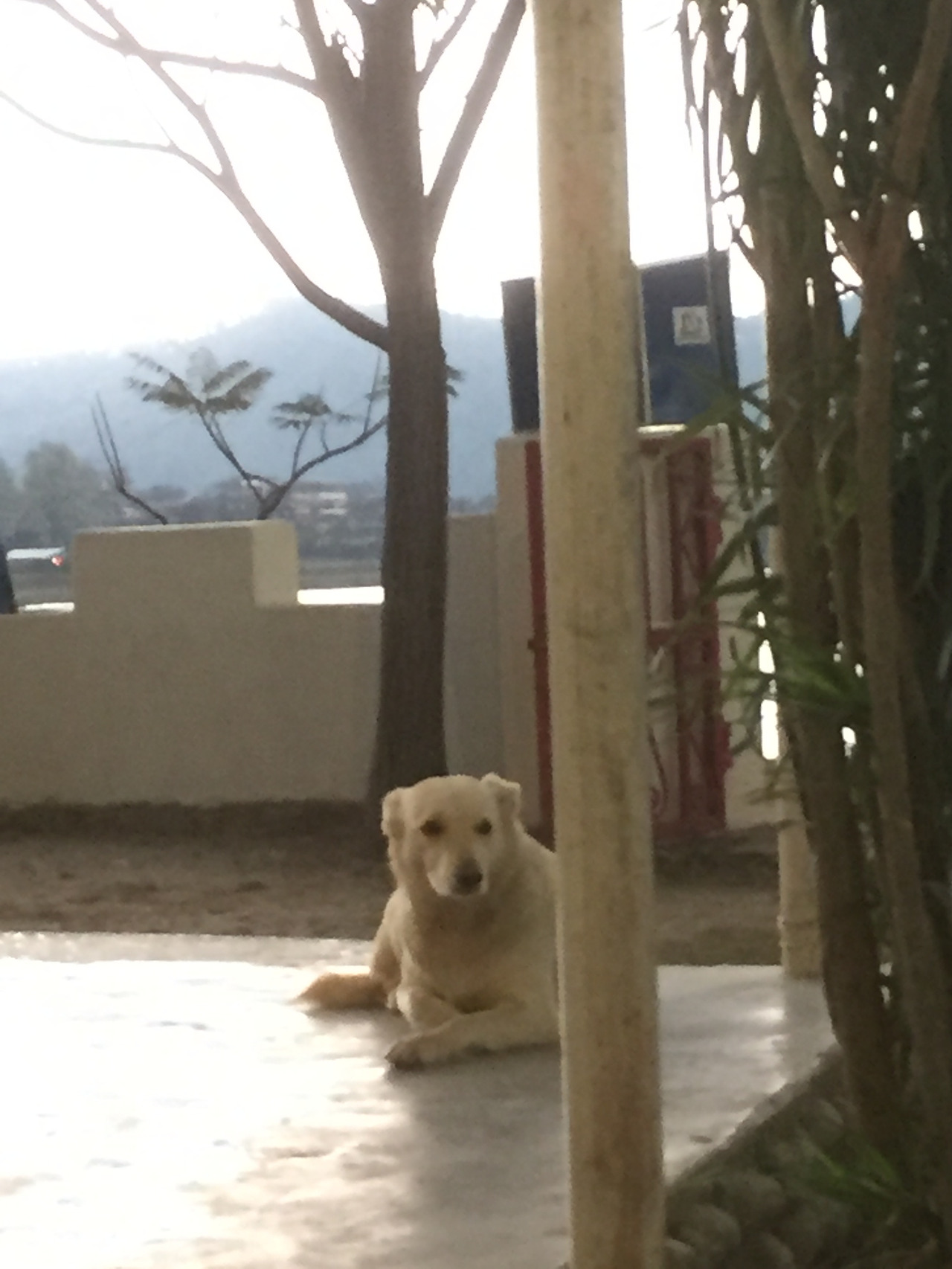 그러던 중 어디선가 하얀 개가 나타나 가게 끄트머리에 살짝 앉아 나를 바라보았다.
