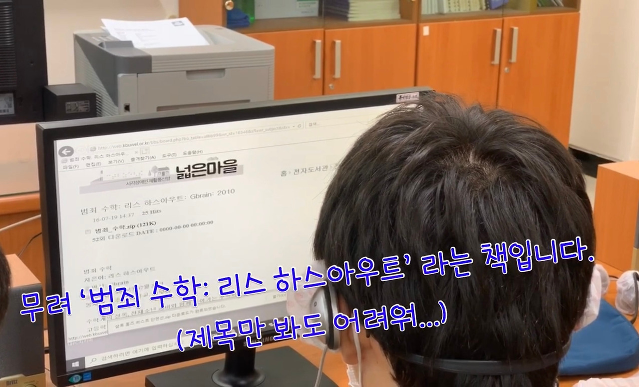 재우는 수학을 좋아하는 친구였다. '넓은 마을'은 시각장애인들이 사용할 수 있는 포털사이트인데, 전자도서관에서 책을 찾는 재우의 손놀림이 예사롭지 않았다. '범죄 수학: 리스 하스아우트'라는 책을 찾으며 기뻐하는 그 친구에게 물었다. "왜 수학이 좋아요?" 대답은 단순했다. "재밌잖아요!" 응용수학도 재밌지만 순수수학이 더 좋다는 재우와 대화하며, 나는 이 친구가 훌륭한 수학자가 될 것이라 확신했다.