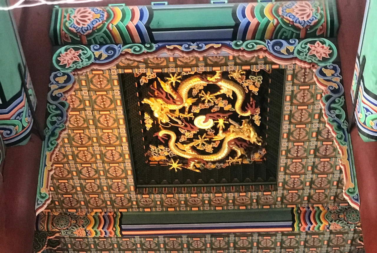 그리고 또 하나의 비밀. 근정전은 앞에서는 도저히 보이지 않는데, 옆에서 봐야 보이는 것이 있다. 7 개의 발톱을 가진 황룡이다. 황룡 두 마리는 왕을 상징한다.