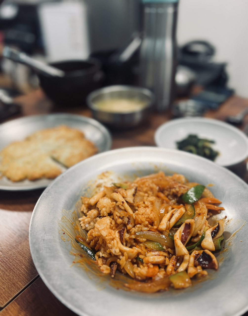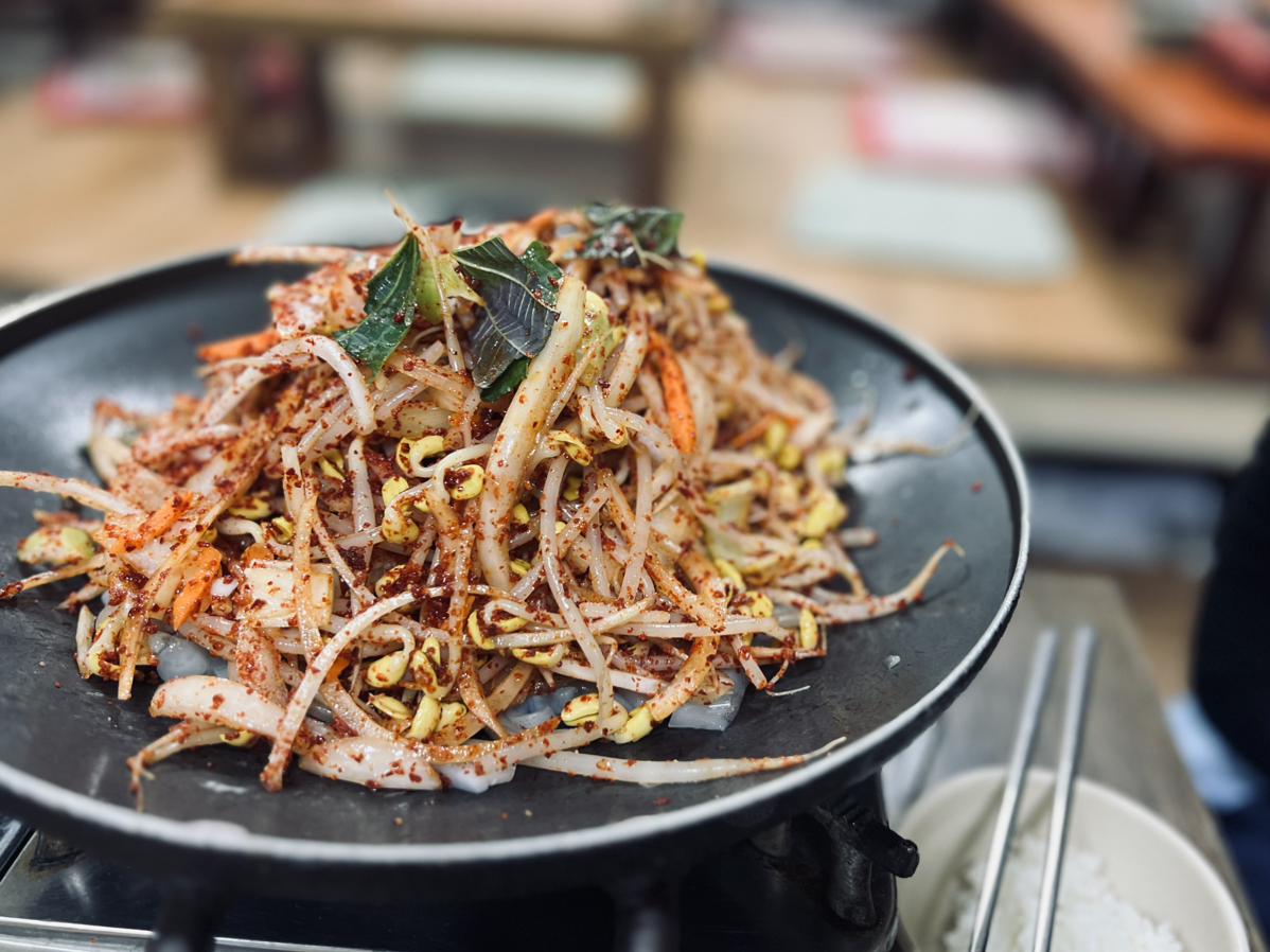 로얄빌딩에 오징어덮밥이 있다면, 세종빌딩엔 오징어야채볶음이 있다. 직접 철판에 볶아야 하는 수고로움은 있지만 가끔 매콤한 불맛이 생각날 때 가면 좋다. 오징어 위로 콩나물이 수북이 쌓여 나오는데, 숨이 죽을 때까지 열심히 볶아줘야 한다. 함께 나오는 공깃밥은 반정도 남겨두었다가 마지막에 볶음밥을 해 먹으면 좋다. (메뉴판엔 없지만 사장님께 얘기하면 참기름과 김가루를 뿌려주신다.)