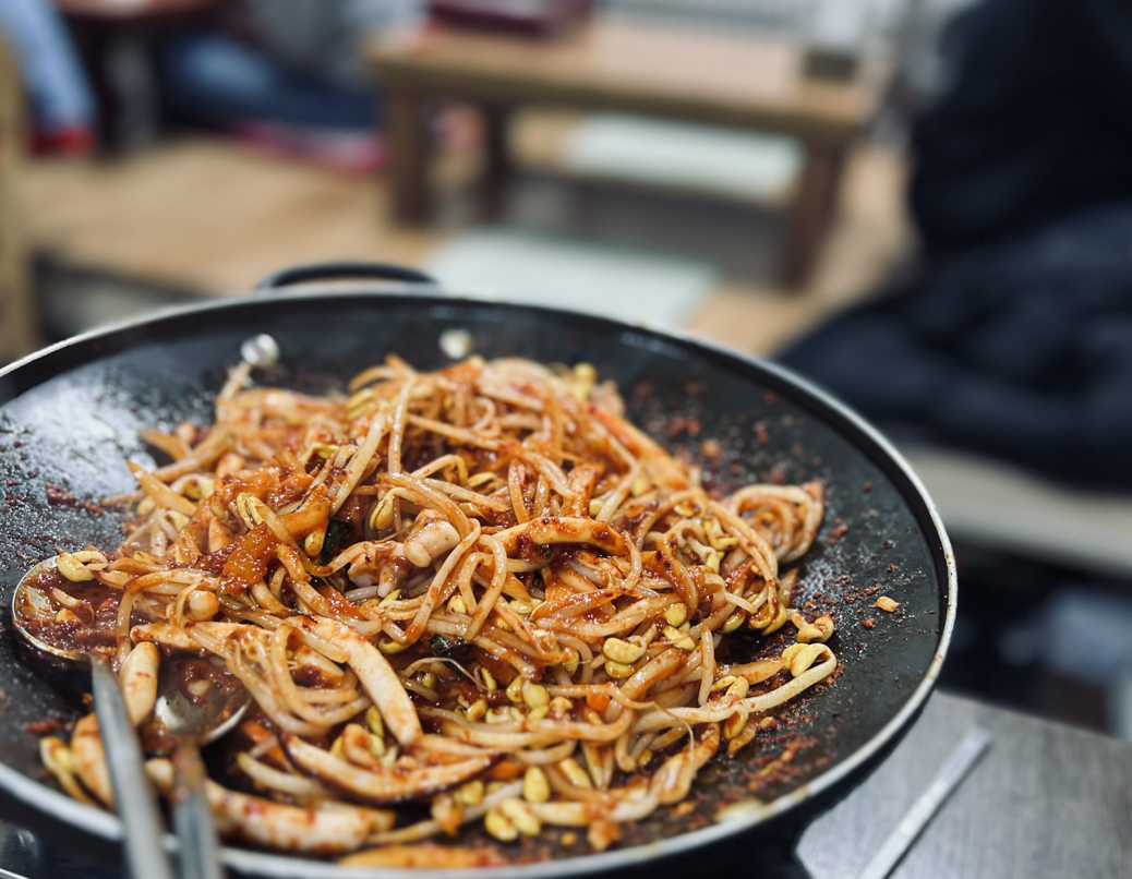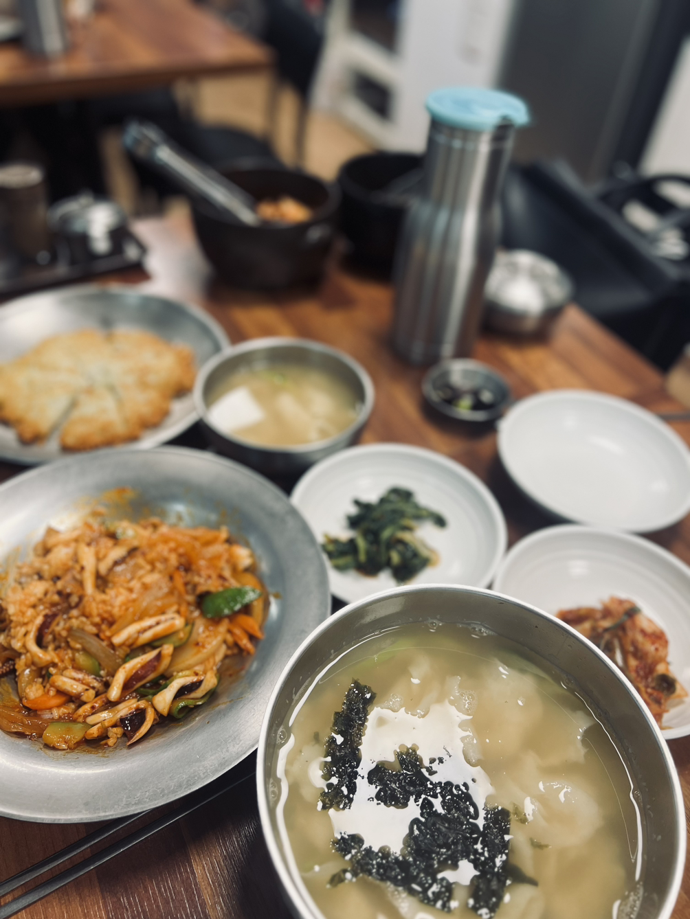 오징어덮밥과 손수제비가 메인인 곳이다. 별미인 감자전이나 납작만두도 맛있다. 사장님이 직접 담그신 열무김치와 배추김치는 반찬으로 맘껏 덜어 먹을 수 있다. 매콤한 오징어덮밥을 시키면 사이드로 작은 사이즈의 손수제비도 함께 나온다. 점심시간에는 가게 밖 복도에도 사람이 넘치는데, 회전율이 꽤나 빠르고, 사장님이 매우 친절하다. 오후 1시 이후에는 감막세트(감자전+막걸리세트 10,000원)도 있으니 참고하여 방문해 보자.