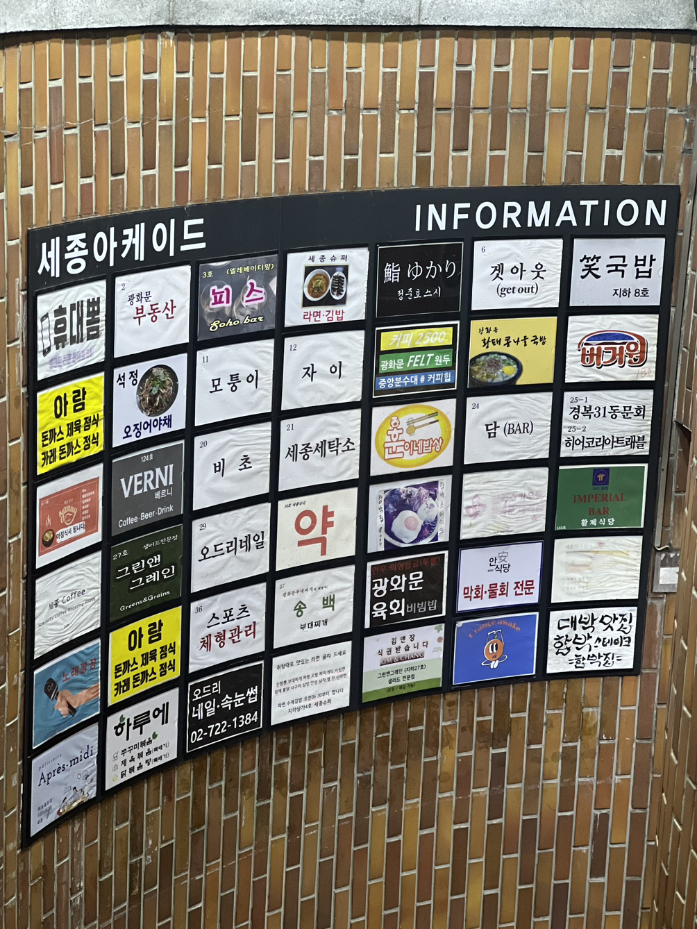 직장인 생태계를 잘 알지 못했던 대학생 때는 광화문에 올 때마다, 생각보다 비싼 레스토랑과 체인점들 사이에서 어디 갈지 고민을 하곤 했다. 그때는 관광객들이 지상에서 식당을 찾는 동안, 직장인들의 발걸음은 빌딩의 지하 아케이드로 향한다는 것을 몰랐다.