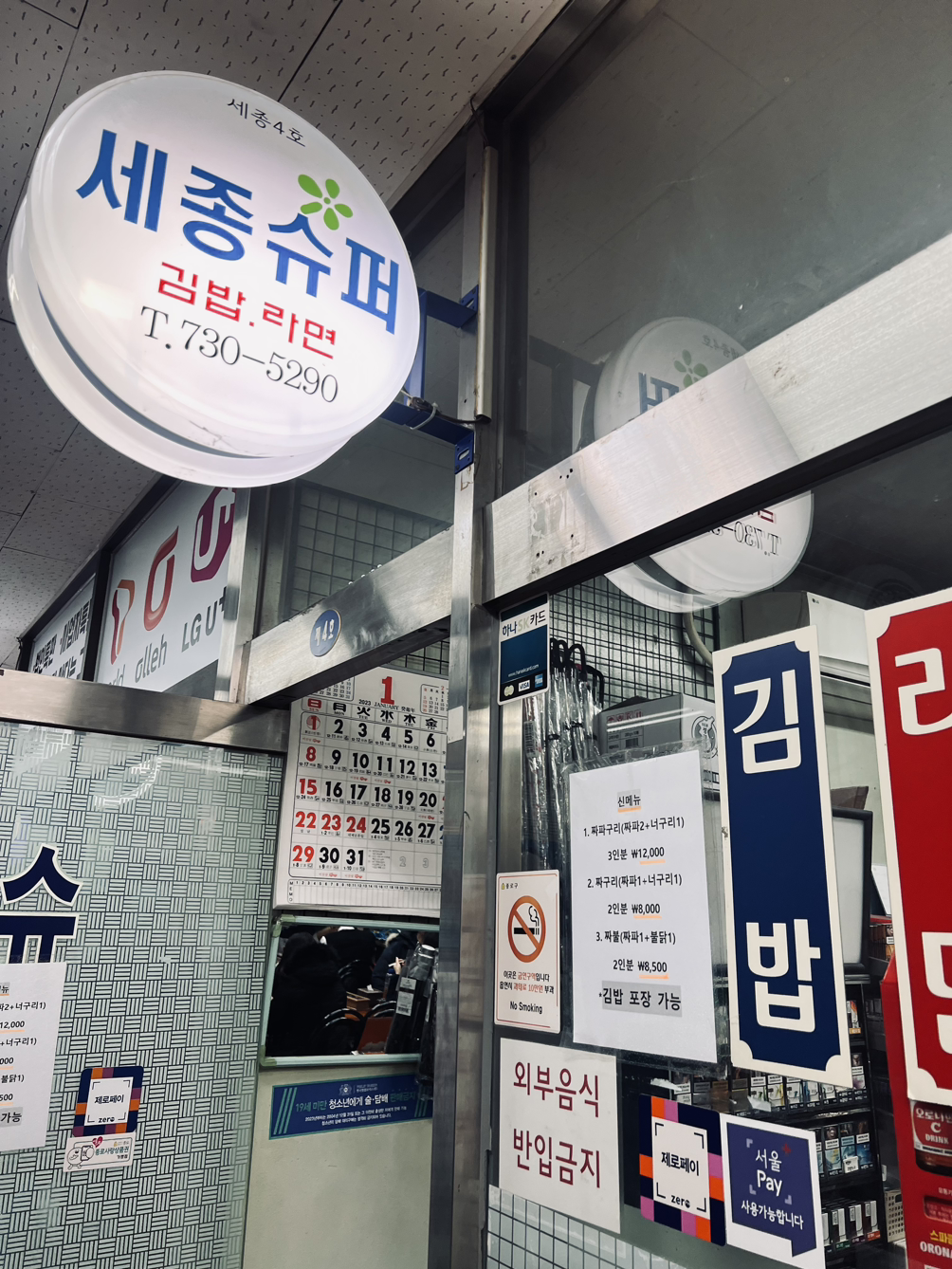 언뜻 슈퍼처럼 보이는 이곳은, 봉지라면을 고르면 사장님 부부가 즉석에서 직접 라면을 끓여주는 곳이다. 계란을 함께 풀어주시고, 꼬들면/퍼짐면의 조절도 가능하다. 라면과 곁들여 먹을 수 있는 김밥은 추가로 구매 가능하고, 김치와 단무지가 제공된다. 라면은 짜파구리(짜파2+너구리1), 짜구리(짜파1+너구리1), 짜불(짜파1+불닭1)과 같은 콤비네이션 메뉴도 있다. 새벽 6시 30분에 문을 열기 때문에 출근 전 이른 아침 잠시 들려도 좋을 곳이다.
