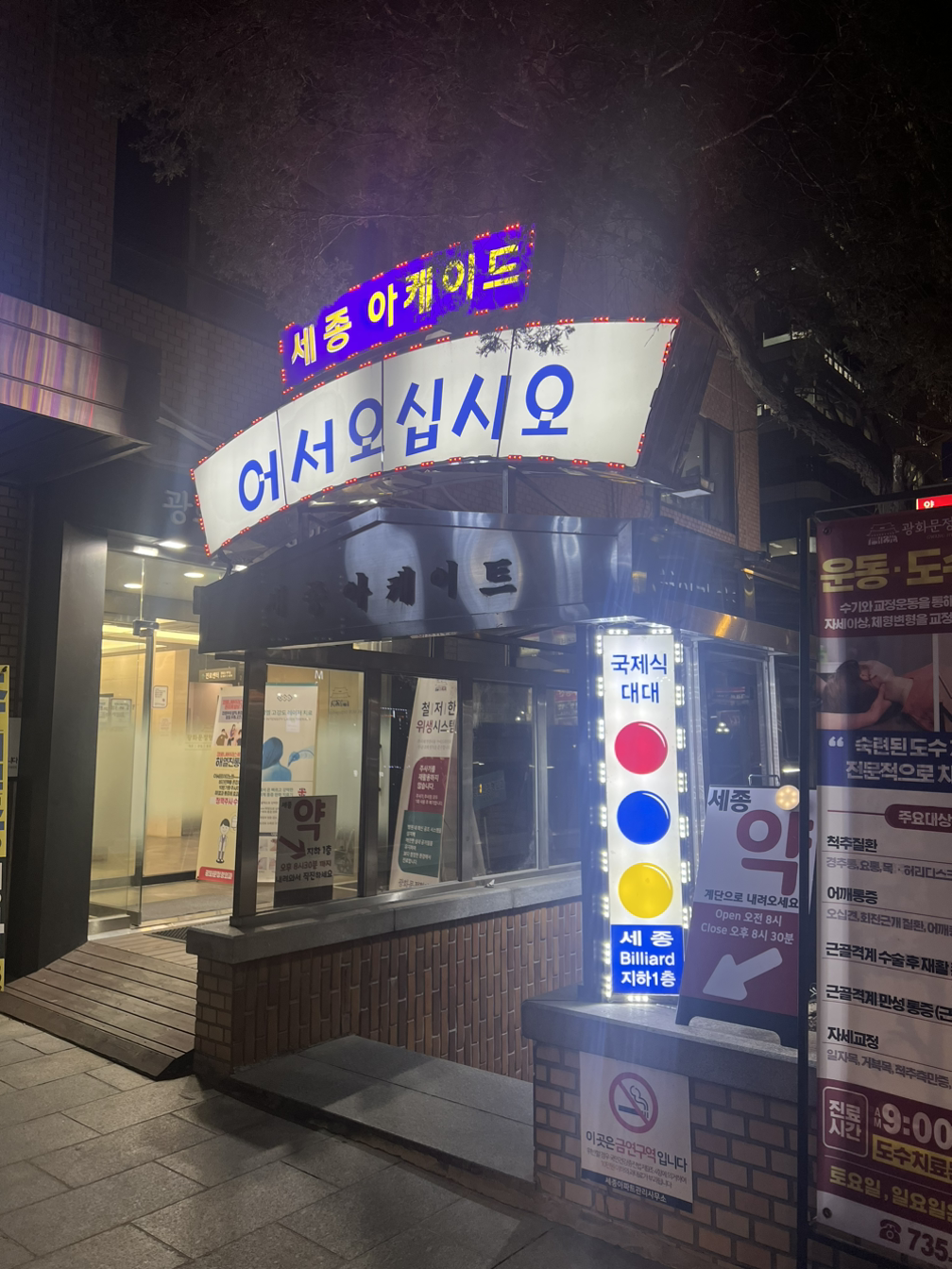 세종빌딩은 로얄빌딩 옆에 위치한 건물로, KMI건강검진센터가 있는 건물이다. 1983년 설립되어 지하 아케이드 중에서도 비교적 세월의 흔적이 묻어있는 곳이기도 하다. 오징어야채를 볶아주는 석정, 소국밥집, 육회비빔밥, 세종슈퍼 같은 곳들이 있는데, 해장하기 좋은 메뉴들을 소개한다.