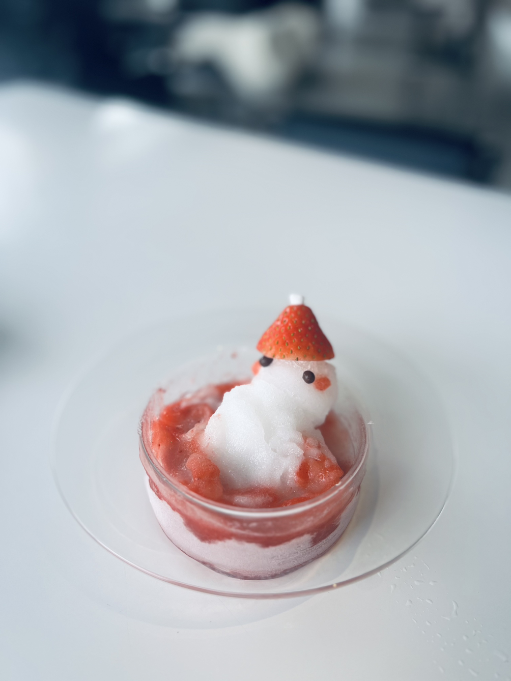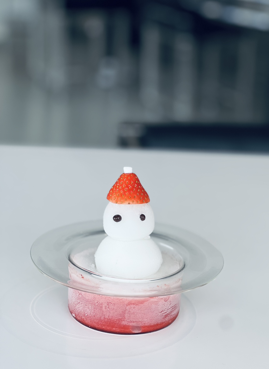 딸기모자를 쓴 스노우맨은 강력한 비주얼을 자랑한다. 딸기퓨레와 요거트를 이용한 소르베로 차갑고 시원한 식감이 딸기의 상큼함과 함께 속을 타고 그대로 내려온다.