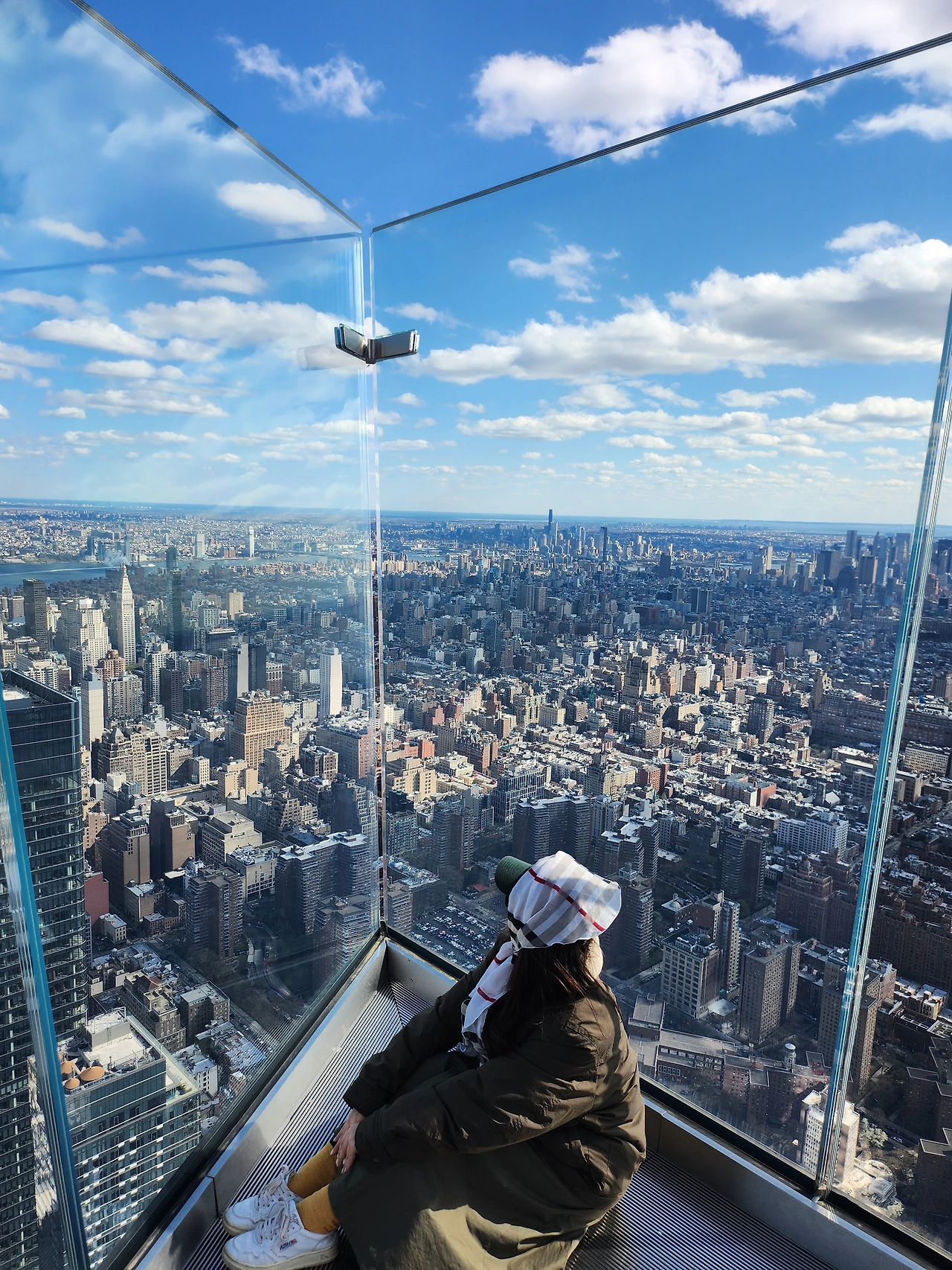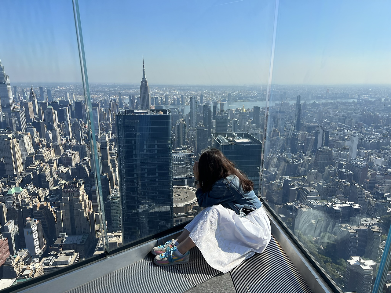 화창한 날 다시 방문한 엣지는 완전히 다른 느낌이었다. 로워맨하탄에 있는 월드트레이드센터부터 어퍼맨하탄에 있는 센트럴파크, 허드슨강 건너편 뉴저지까지 훤히 모든 것이 보였다. 360도 파노라마 뷰에 맨해튼이라는 도시의 거대함이 다 담겼다.