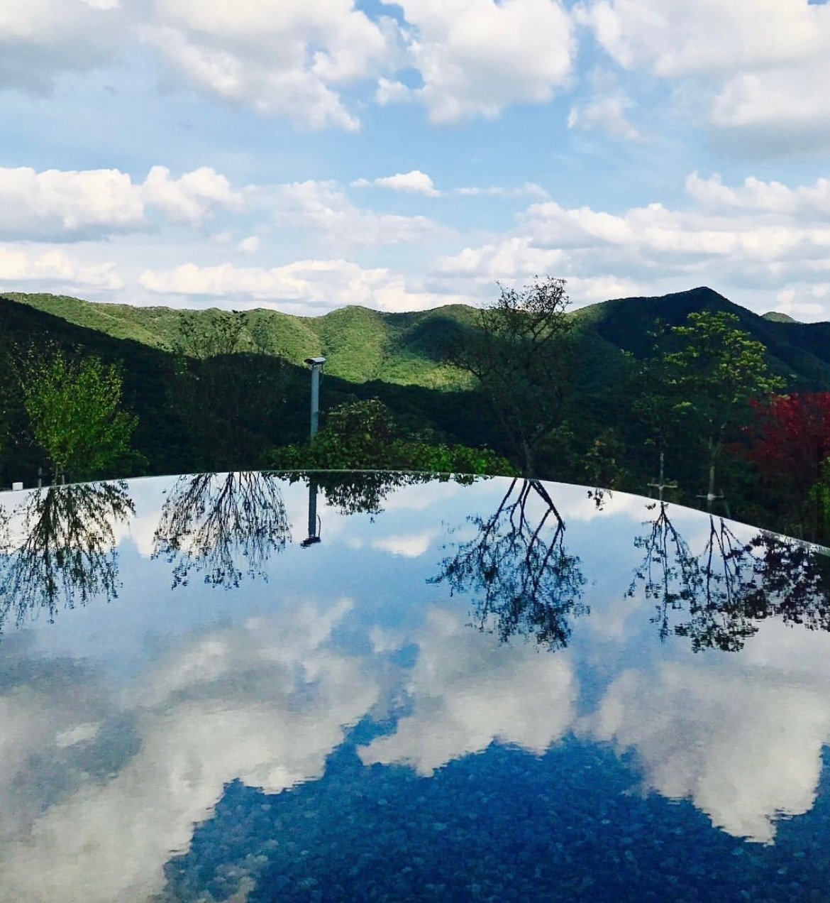 올해 개관 10주년이 된 뮤지엄 산은 세계적인 건축가 안도 타다오에게 한솔그룹 이인희 고문이 의뢰하면서 탄생했다. 안도는 처음에는 산속에 누가 오겠냐며 거절하려고 했지만, 직접 방문해 보고는 이곳 자연과 어우러지는 뮤지엄을 만들 수 있겠다 싶어, 한국에만 있는 자연, 물, 녹음, 돌 등을 이용해 뮤지엄 산을 만들었다. 뮤지엄 산의 심볼인 빨간색 산 모양의 거대한 조각은 알렉산더 리버만의 붉은색 아치웨이(Archway)다. 오솔길을 따라가다 보면 플라워가든, 워커가든을 지나 본관이 있고, 명상관, 스톤가든, 제임스퍼렐관으로 이어진다.