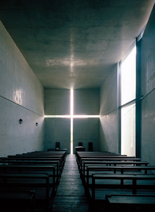 그의 또 다른 유명한 작품인 '빛의 교회'는 십자가를 자연의 빛으로 표현하였다. 이곳에도 에피소드가 있는데, 안도는 '빛의 교회' 설계 당시 십자가 부분에 아무것도 설치하지 않으려 했지만, 교회 사람들이 방한을 문제로 유리창을 설치했다고 한다. 안도는 살아있는 동안 그 유리창을 꼭 제거하고 싶지만, 교회에 가면 무슨 말을 하기도 전에 교회 분들은 유리창을 제거할 수 없다고 말하곤 한다며 웃었다.