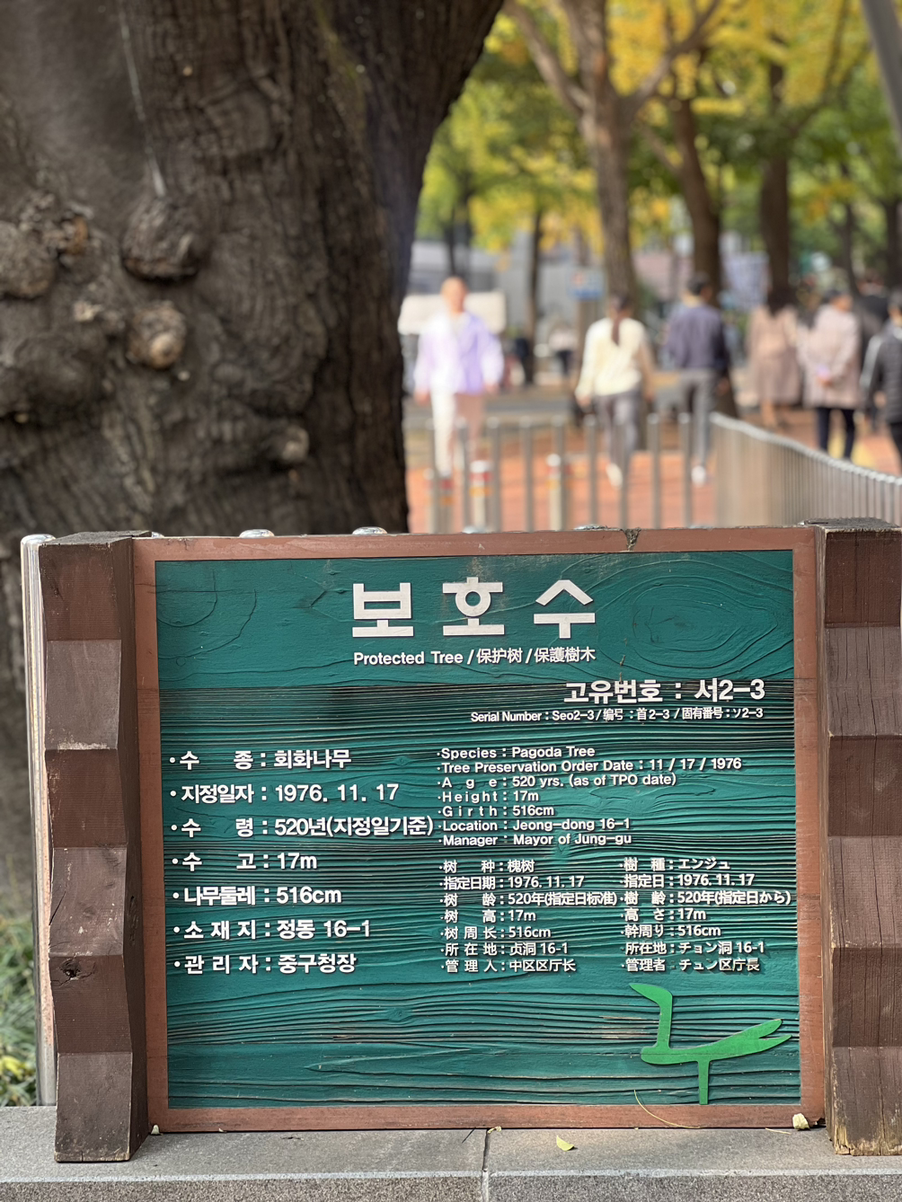 서울에서 두 번째로 나이 많은 이 보호수는 한국의 근현대와 역사를 함께한다. 대한제국의 탄생이 이루어진 덕수궁, 최초의 근대 교육기관인 배재학당과 이화학당, 한국 최초의 개신교 교회인 정동교회 모두 정동길에 있기 때문이다.