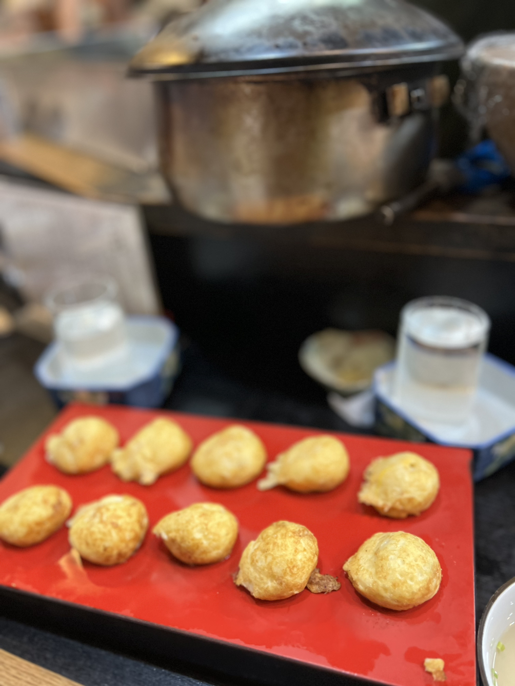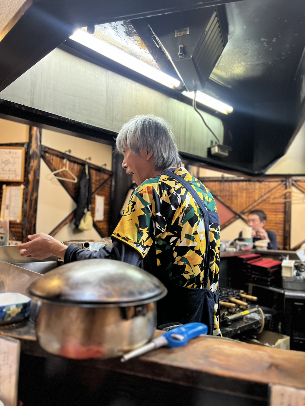 좌석은 모두 카운터 바로 되어있는데, 만석이어도 손님이 오면 어디선가 계속해서 의자가 생기고 주변 손님들이 자리를 조금씩 내어준다. 우리가 방문한 날도 그랬다. 다만, 그날이 조금 더 특별했던 것은 한신타이거즈가 38년 만에 우승을 차지했다는 것이다. 가게에 TV는 없었지만 라디오를 통해 다들 야구 경기에 집중했고, 우승의 순간 모두가 한신타이거즈 응원가를 부르며 하나가 되었다. 쉴 새 없이 아카시야키(*타코야키를 국물에 찍어먹는 음식)를 굽던 주인아저씨도 씨익 웃으며 한껏 들뜬 모습이었다.