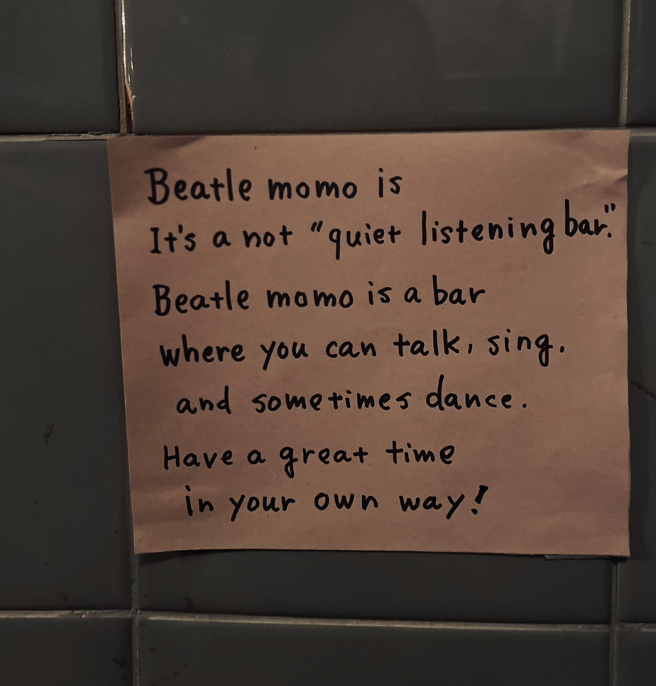 화장실에 붙은 메모 또한 인상적이었다. 이곳은 조용한 바가 아니니 언제든 얘기하고 노래하고, 춤추라! 마감시간에 가까워질 무렵부터는 모두가 하나 되었고, 사장님의 흥이 바로 momo 그 자체였다.