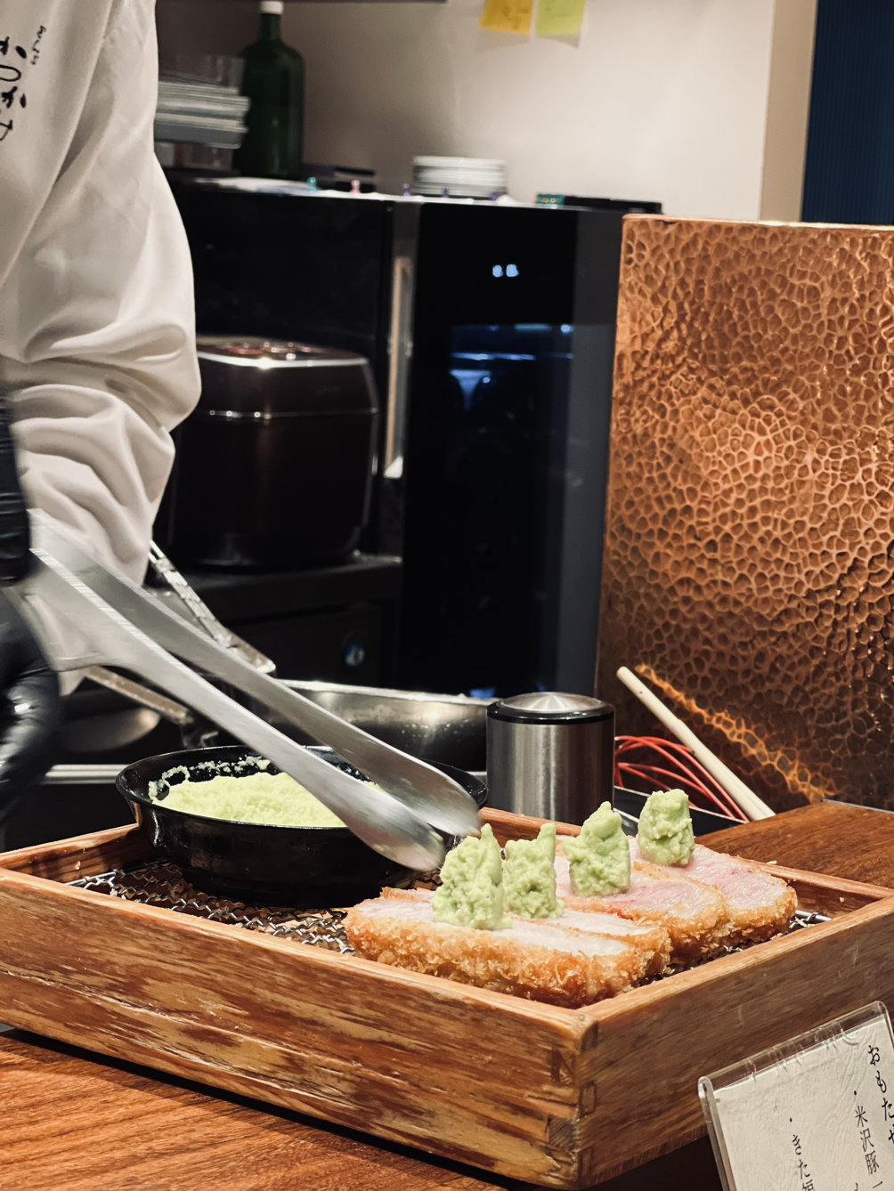 미식의 도시이기도 한 도쿄에는 유명하고 오래된 돈가스 맛집들이 많다. 가방도 잊을 만큼 서둘러서 갔던 저녁 장소는 '카츠카미'라는 긴자의 돈가스 오마카세 집이었다. 돈가스 치고 비싼 가격이었지만, 직접 경험해보고 싶어 'tablecheck'라는 앱을 통해 풀부킹을 뚫고 예약에 성공했다.