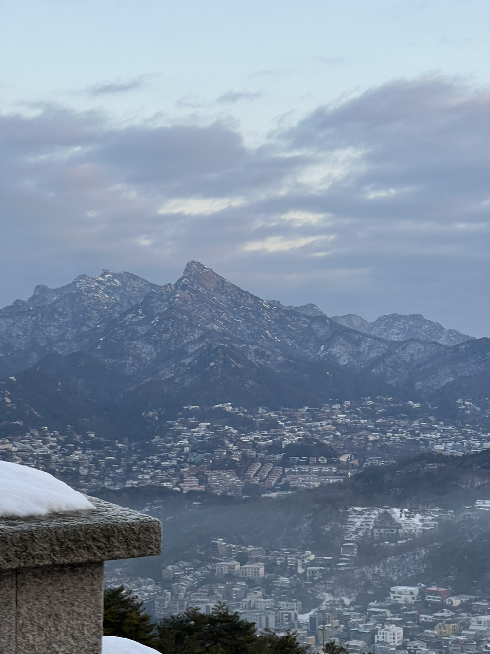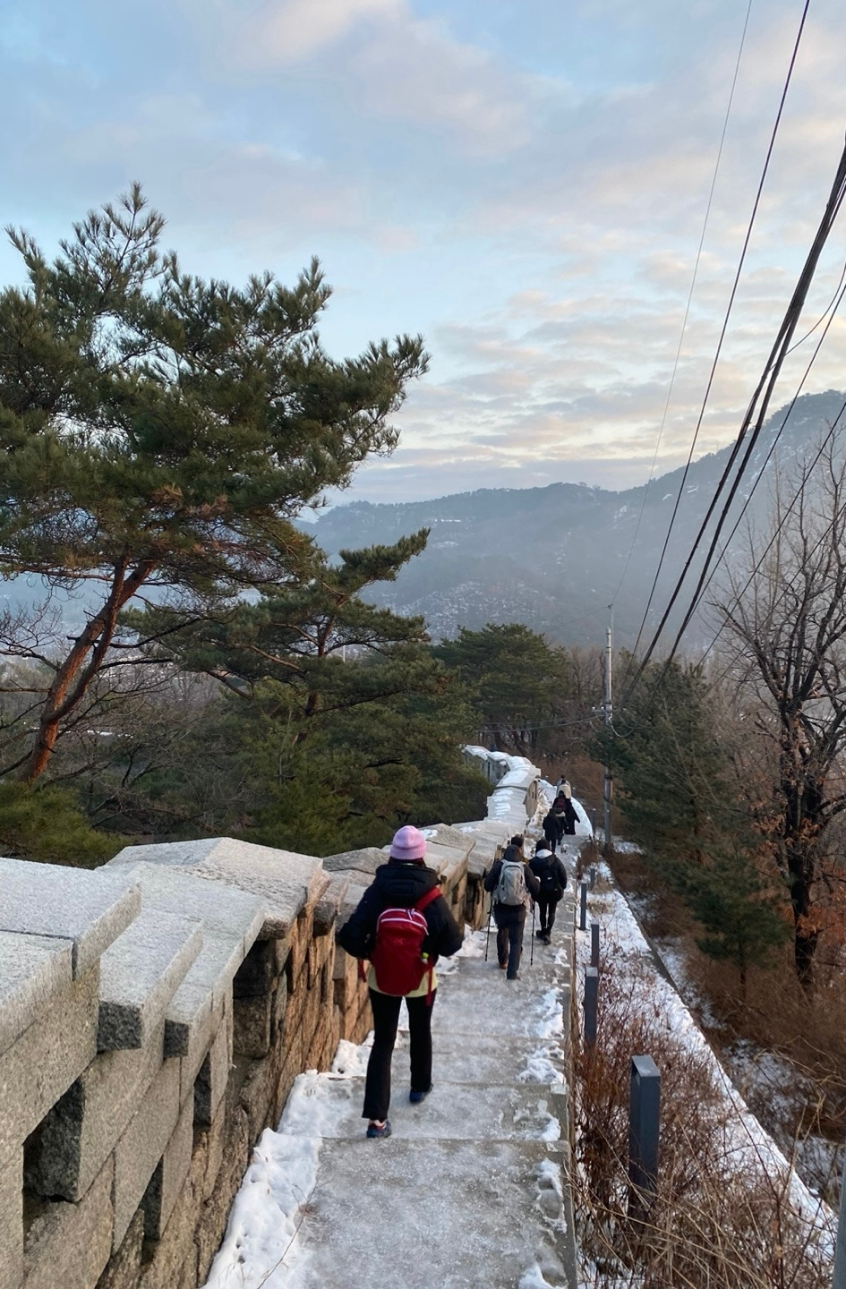 1월 1일을 맞이하며 광화문 광장에서 카운트 다운을 하고 새해 첫 일출을 보러 인왕산에 올랐다. 작년까지는 새해 카운트다운을 한 후 여유롭게 일어나 떡국을 먹었는데, 올해는 새벽 5시로 알람을 맞추었다. 인왕산은 종종 가던 곳이지만, 연말에 이례적인 폭설이 내렸던 만큼 아이젠과 장갑, 모자, 핫팩을 챙기고, 나눠먹을 간식도 야무지게 챙겼다.