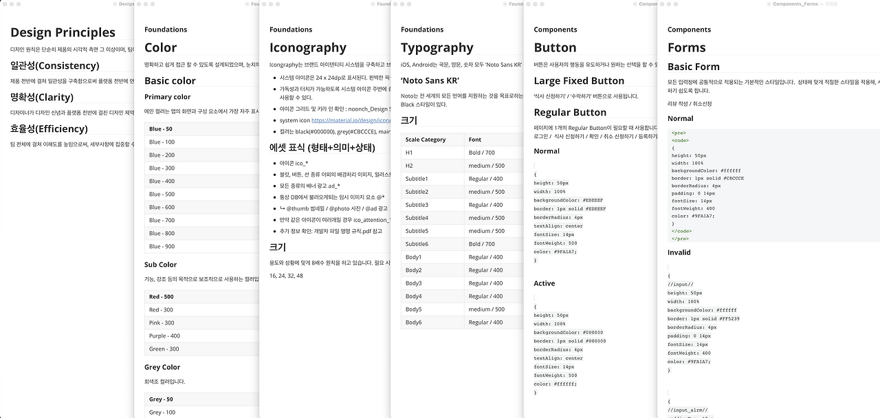 앞서 말한 바와 같이 추후 디자인 시스템 사이트를 구축할 수도 있기 때문에 문서작업에 신경 쓰는 것도 있지만, 제일 큰 이유는 디자인 시스템에 대한 기업 내부 매뉴얼이 없기 때문에, 초기 가이드라인을 만들고 싶었다. 아직 부족한 부분은 많다. 현재 디자인 시스템은 눈치에 치중되어 있지만, 시행착오를 거쳐 온전히 기업의 디자인 시스템이 완성될 수 있도록 모두가 참여하고 있다.