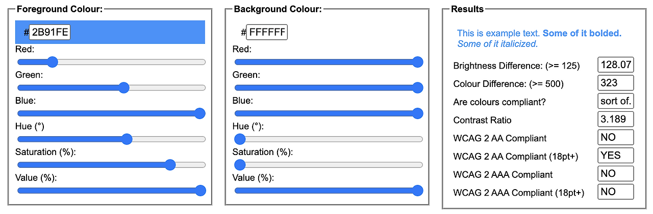 snook.ca, Colour Contrast Check에서 웹 접근성 기준에 부합하고 있는지 색상 대비를 확인해 보는 것도 좋을 것 같다.