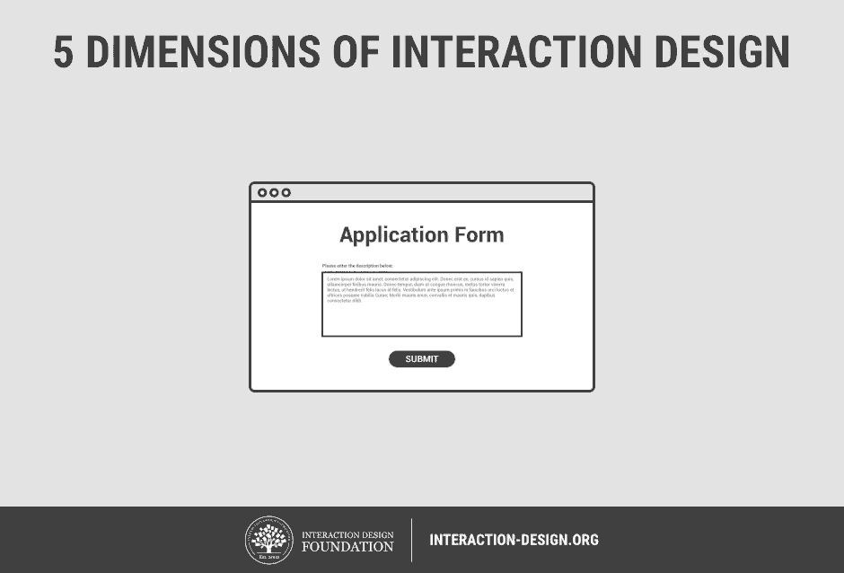 인터랙션 디자이너는 사용자와 제품 또는 서비스 간의 상호 작용을 고려하기 위해 5가지 차원 모두를 활용해야 한다. 특히 아직 도입되지 않은 설계와 관련하여 사용자의 실제 요구 사항을 예측해보는데 사용되기도 한다. 예를 들어, 대중교통 시스템(지하철/메트로) 내부에서 문제점을 찾기 위해선 데이터를 처리해야 하는 앱 설계자는 비좁은 공간, 빠른 이동 경로 탐색, 데드 존 등 지하철을 이용하는 사용자의 의견을 수용하는 상황에 직면해야 한다.