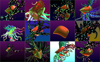 ‘갈라파고스’는 예술가이자 프로그램개발자인 칼 심스의 작품이다. 생물공학을 전공한 그는 동시다발적인 식물의 성장과 유전자 복제과정에서 일어나는 돌연변이 현상을 예술의 주제로 삼고, 관객의 참여를 동인으로 가상 생태계를 만들어내는 작품을 선보였다. 12대의 컴퓨터는 가능한 경우수를 모의실험해서 매번 다른모양의 추상적인 생명체를 스크린에 보인다. 관객은 그 중에서 가장 맘에드는 생명체를 꼽는다. 관객에게 선택받은 생명체만 살아남고 나머지는 죽는다. 살아남은 생명체는 다시 교합하고 분리하면서 돌연변이를 일으킨다. 그리고 다른 관객의 참여에 의해 다시 다른 모양으로 바뀌는 진화의 과정을 거듭한다. 요약하자면, 칼 심스의 '갈라파고스'의 기본 알고리즘은 컴퓨터로 프로그래밍된 생태계가 관객의 참여를 동력으로 매번 다른 생명체(예술작품)로 창조되는 것이다. 이때의 예술가는 절대적인 창조자가 아닌 프로그램설계자에 지나지 않으며 관람객의 선택에 따라 작품은 끊임없이 유동한다.