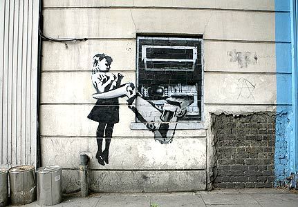 그래피티, 이것은 문화 파괴행위(vandalism)일까? 그저 벽에 낙서하는 장난질에 불과하다고 하기엔 뱅크시가 세상에 던지는 일침이 꽤나 날카롭다. 그는 그래피티를 통해 자본주의의 늪에 빠진 미술계와 소비 중심주의에 중독된 사람들을 비판하고 갤러리를 중심으로 미술과 비미술을 나누는 것을 비웃으며 미술의 본질을 다시 성찰할 것을 촉구한다. 그는 말한다. “도시 경영자 관리자들은 그래피티를 이해하지 못한다. 그들에게는 이윤을 내지 못하는 것이라면 그 어떤 것도 존재 가치가 없기 때문이다.”, “소수의 부자들만이 전유하는 그들의 보물창고, 갤러리. 대중은 그저 이방인에 불과하다.”