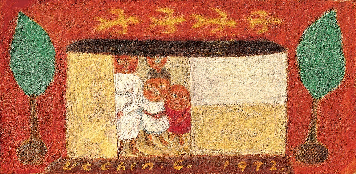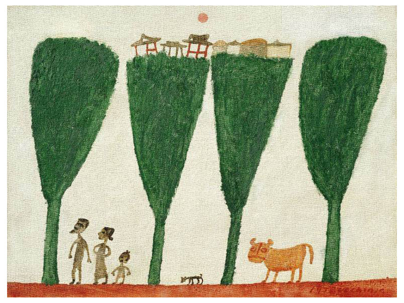 그가 그린 <집>은 늘 사람들로 꽉 차 있다. 사람들은 작은 흙집에 옹기종기 모여 창밖이나 문밖을 내다본다.