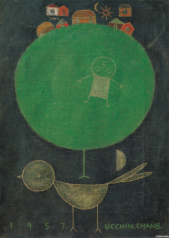 장욱진, <나무와 새>, 1957 한국 근현대사의 질곡과 생애를 함께한 입지적인 화가로 이중섭, 박수근, 김환기, 유영국을 든다. 여기에 단연 장욱진(1918-1990)을 빼놓을 수 없다.