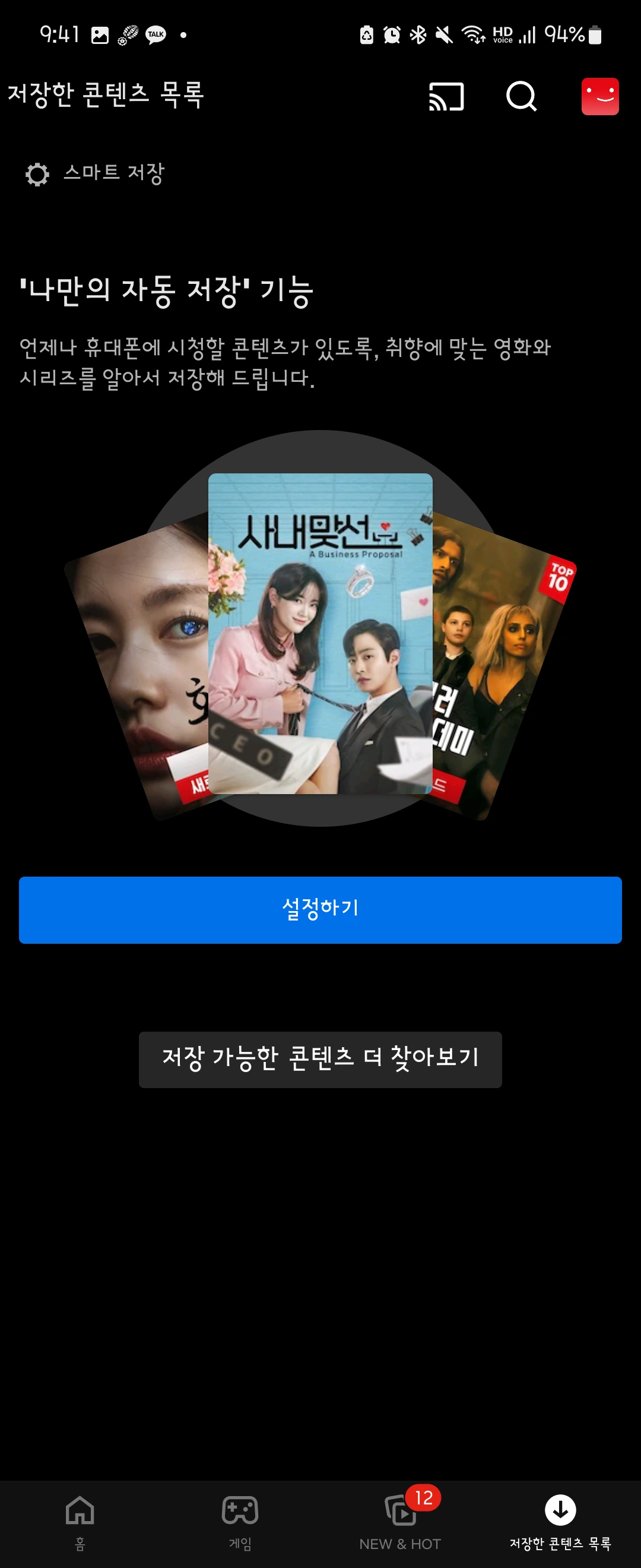 저장한 콘텐츠 목록 탭은 기본적으로 저장 기능이 꺼져있기 때문에 자동 저장을 설정할 수 있는 버튼이 노출되는데, ‘설정하기’ 버튼을 누르면 넷플릭스에서 추천하는 프로그램들이 자동으로 저장된다. 그러나 개인적으론 내가 원하는 프로그램이 아니라 자동으로 추천 프로그램을 먼저 저장하기 때문에 원하지 않는 프로그램을 내가 일일이 지워야 하므로 해당 기능이 디폴트로 되어있는 점은 별로인 것 같다. 좌측 상단에 스마트 저장을 누르면 ‘나만의 자동 저장’ 기능을 끌 수 있는데, 나라면 자동 저장 기능을 꺼둘 것 같다. 자동 저장 기능을 꺼둔다면 이게 꼭 필요한 기능인지는 사람들이 사용하는 빈도를 관찰해볼 필요가 있을 것 같다.