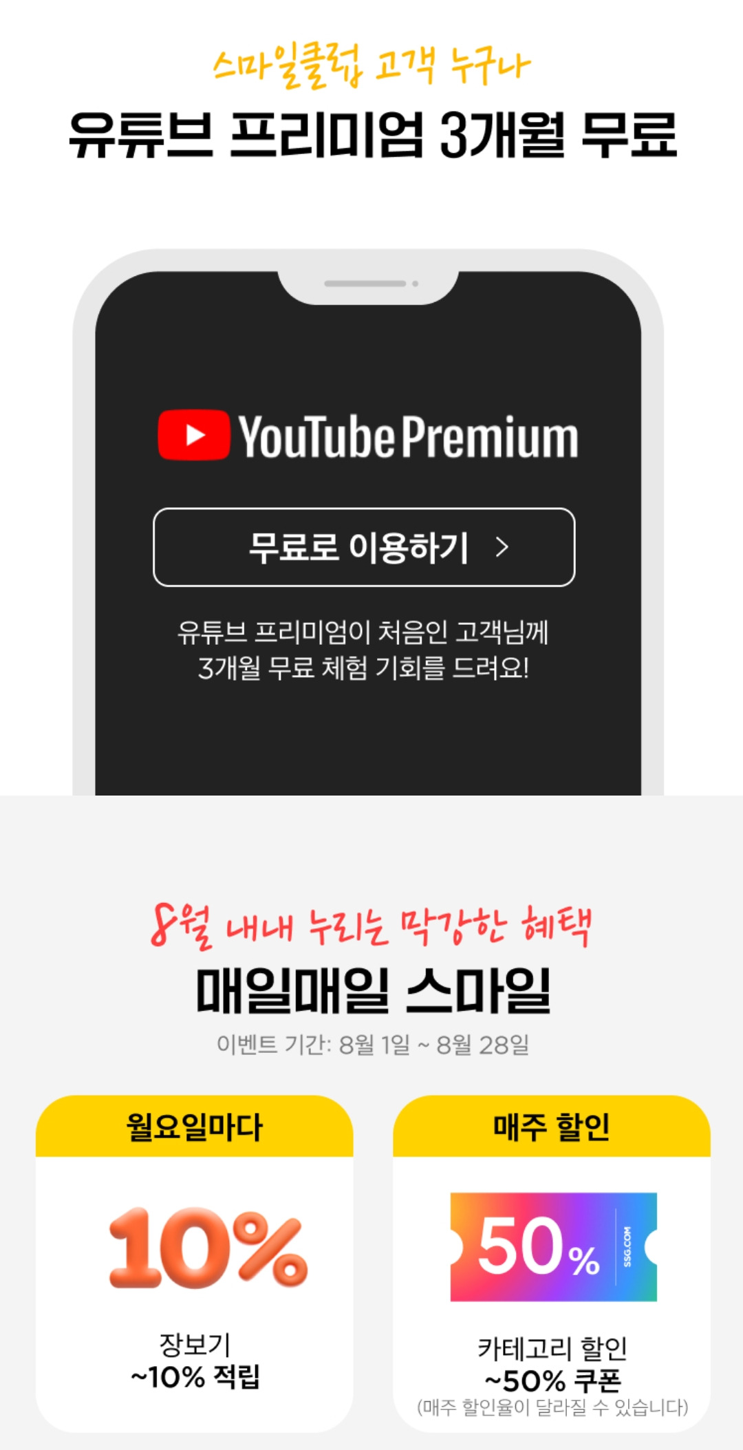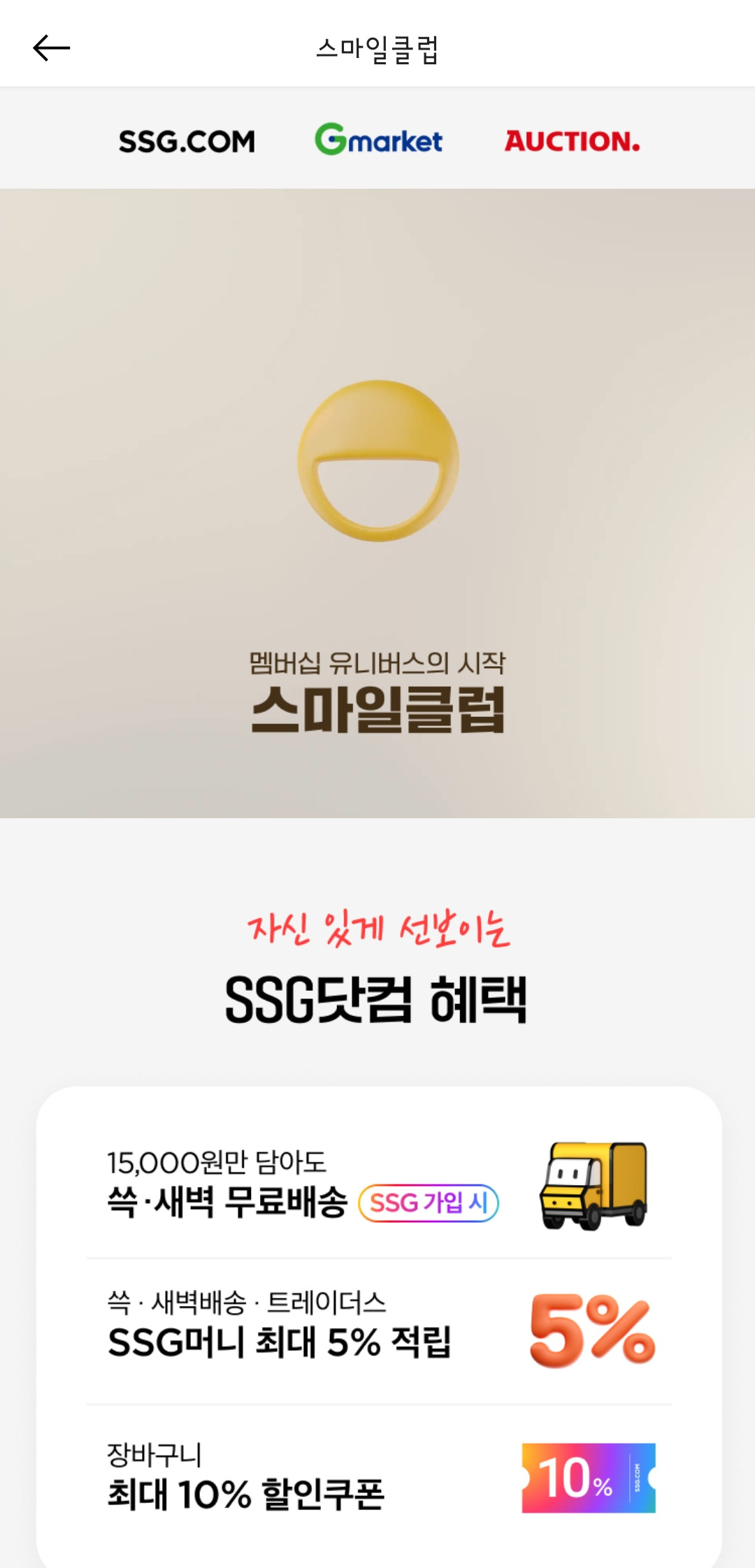 위와 같은 이유들로 애써 미루고 있었는데, SSG에서 장을 보려고 담다가 스마일클럽 이벤트를 보게 되었다.