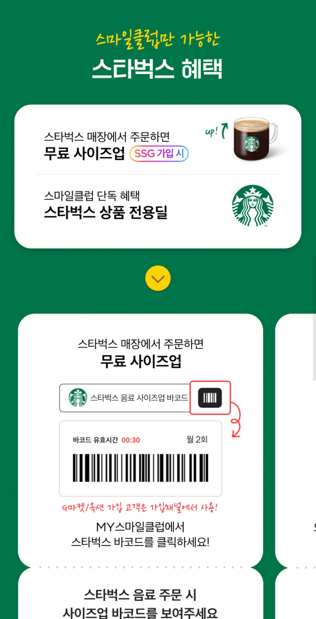 3. 스타벅스 매장에서 주문하면 무료 사이즈업 2회