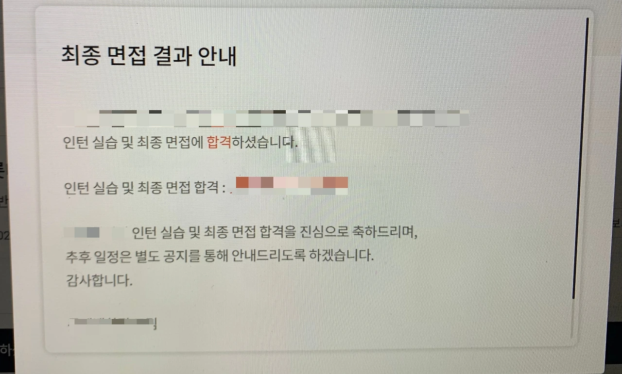 난 3번의 인턴을 거쳐 취업에 성공했다. 그 사이 몇 십 개의 자소서를 쓰고 몇 십 번의 면접을 봤는진 셀 수 없다. 채용 담당자가 보낸 이메일의 첫 문장만 읽어도 합불을 맞출 수 있는 경지에 도달했을 때쯤 최종 합격을 거머쥐었다. 공지된 시간에 맞춰 채용 홈페이지 새로고침을 몇 백번 누르다 합격 화면을 마주했을 때 눈물이 주르륵 흘렀다.
