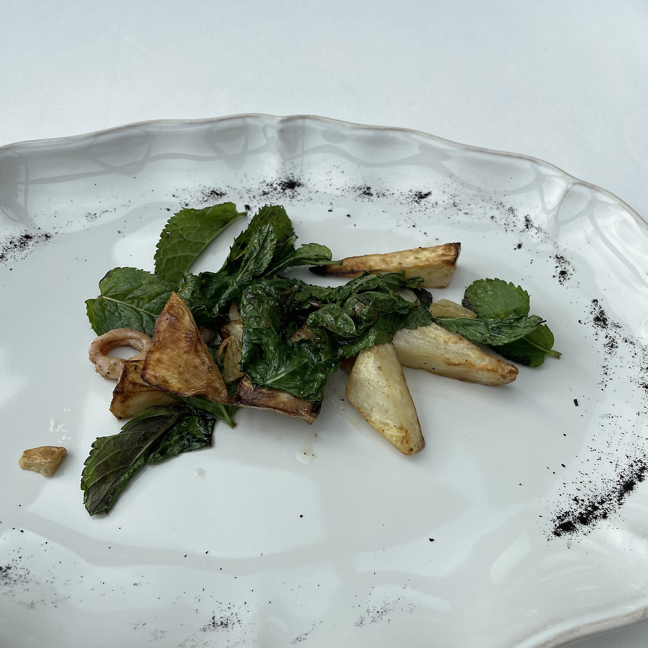 <우크라이나 호텔 스카이라운지 '부오노'(BUONO)' 테이스팅 메뉴. 안심 스테이크와 애피타이저로 오징어 감자 샐러드, 생굴 '하나'가 세트였다>