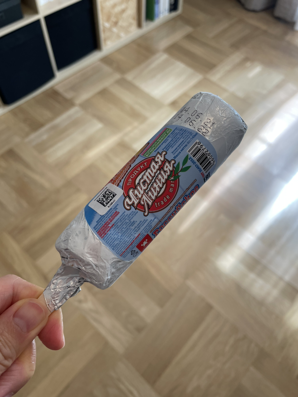 러시아에는 버터가 없다. 적어도 나는 못 봤다. 믿기 힘든 이야기지만 정말이다. 대신 '버터밀크'라는 게 있다. 사실 지금껏 '버터밀크'라는 말을 들어본 적이 없어서, 처음엔 버터밀크가 내가 아는 버터겠거니 하고 사서 썼는데, 색깔부터 내가 아는 노리끼리? 노르스름과 거리가 멀었다. 버터를 세탁기에 몇 번 돌린 것처럼 희뿌옇다고 하면 맞을 것 같다. 맛도 버터보다 훨씬 더 가벼워서 오히려 마가린 맛에 가깝다.