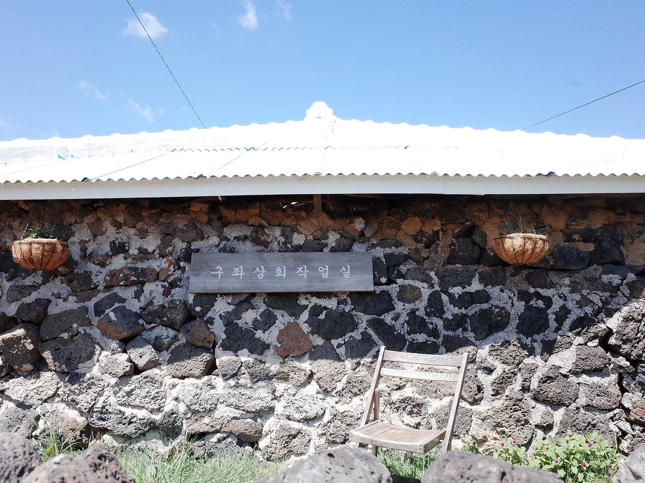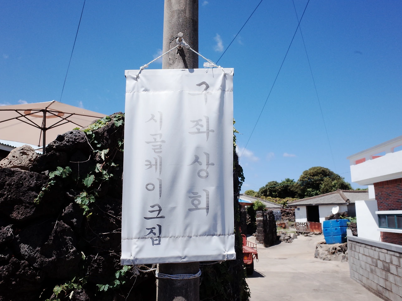 하시며 동네의 자랑인 것 마냥 즐거워하셨다. 몇몇 공간들이 마을 전체의 분위기를 바꾸고 있었다. 옛날 주택 같은 모습을 간직하고 있는 구좌상회라, 혹여나 지나칠세라 전봇대에는 전혀 이질감 없는 느낌의 이정표 현수막이 걸려 있었다.