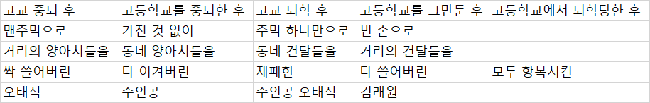 원문: "고교 중퇴 후 맨주먹으로 거리의 양아치들을 싹 쓸어버렸던 오태식."