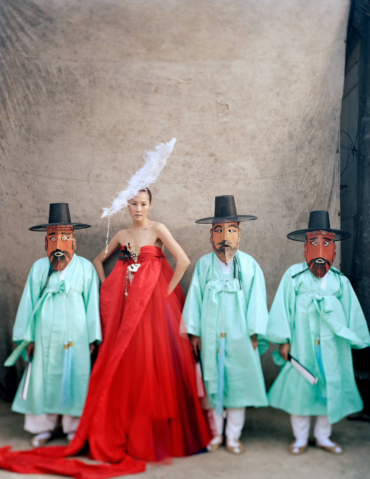 1985년 일본에 방문했을 때의 일이다. 당시 사진가 호소에 에이코가 내게 소개해줄 것이 있다고 했는데, 바로 우리나라 민화를 집대성한 책이었다. 일본인임에도 불구하고 그는 우리 민화가 아름답다며 극찬을 아끼지 않았다. 책을 보면서 한국적인 요소에 대해 크게 자극을 받았다. 아니 쇼크라는 표현이 더 정확할 수도 있겠다. 언젠가는 이런 것들을 사진에 넣어야겠다고 생각했다. 패션 사진에 한국적인 요소들을 반영한 것은 이영희 디자이너와 한복 촬영을 진행하면서부터다. 한겨울 경주 양동마을에서 마을 할머니와 할아버지, 꼬마들을 모델과 함께 연출해서 찍었다. 신윤복의 회화 같은 느낌을 표현하고 싶어서였다.
