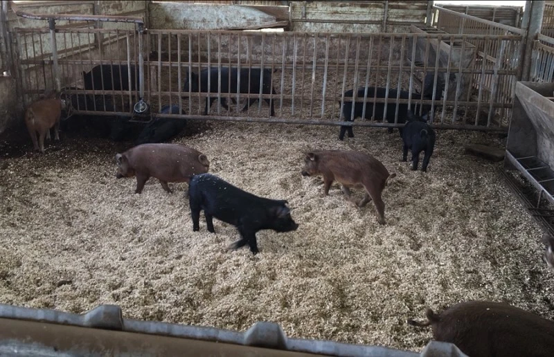 돼지고기 생산지는 전북 순창에 있다. 마을 어귀에 위치한 생산자 선생님 댁에서 이런저런 이야기를 나누고 돈사를 찾았다. 놀랍게도 돈사는 우리가 이야기를 나눈 선생님 댁 바로 옆에 있었다. 3개의 돈사에 40여 마리의 돼지가 뛰어놀고 있었음에도 불쾌한 냄새가 전혀 없었다. 그 비결은 1m 깊이의 톱밥과 화장실을 가리는 영특한 돼지 본성에 있다 하셨다.