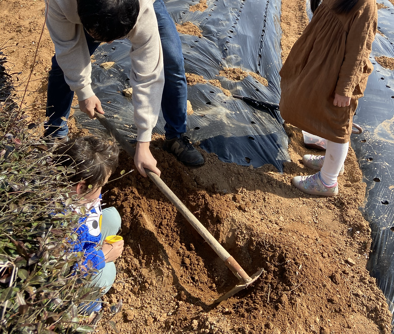 곡괭이로 땅을 깊게 파서 태반을 툭 던져 넣고 다시 흙을 덮은 뒤 아이들에게 꾹꾹 밟아달라고 했다. 아이들의 발길이 지나간 흙은 아무 일 없었던 것처럼 입을 앙다물고 조용했다. 순식간에 2년을 벼른 일을 끝내고 비닐과 비닐 사이 이랑을 걸어 나왔다.