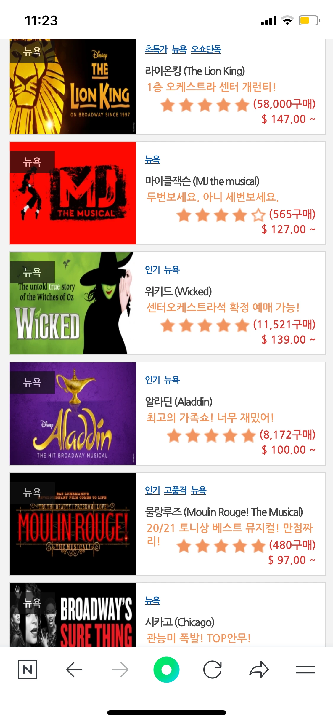 오기 전, 브로드웨이 어떤 뮤지컬을 볼까- 를 고민하다가 몇날 며칠이 지났는데도 마냥 즐거웠던 기억이 난다. 근데 이제 나중이 되니 하 대체 뭐 골라.. 다 보고 싶어! 가 돼서 화딱지 났었다.;